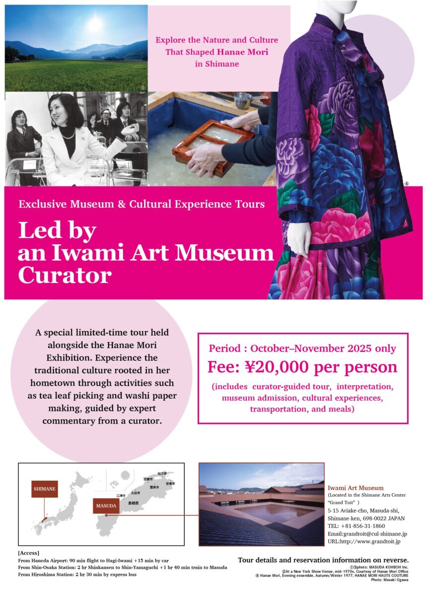 17:15-18:45 | Visit to the Hanae Mori Exhibition and Sekishu Washi Exhibition | 90min | Iwami Art Museum |