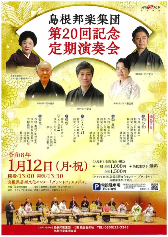 【お問合せ】島根邦楽集団 熊谷雅楽映(電話:0856-22-3345)